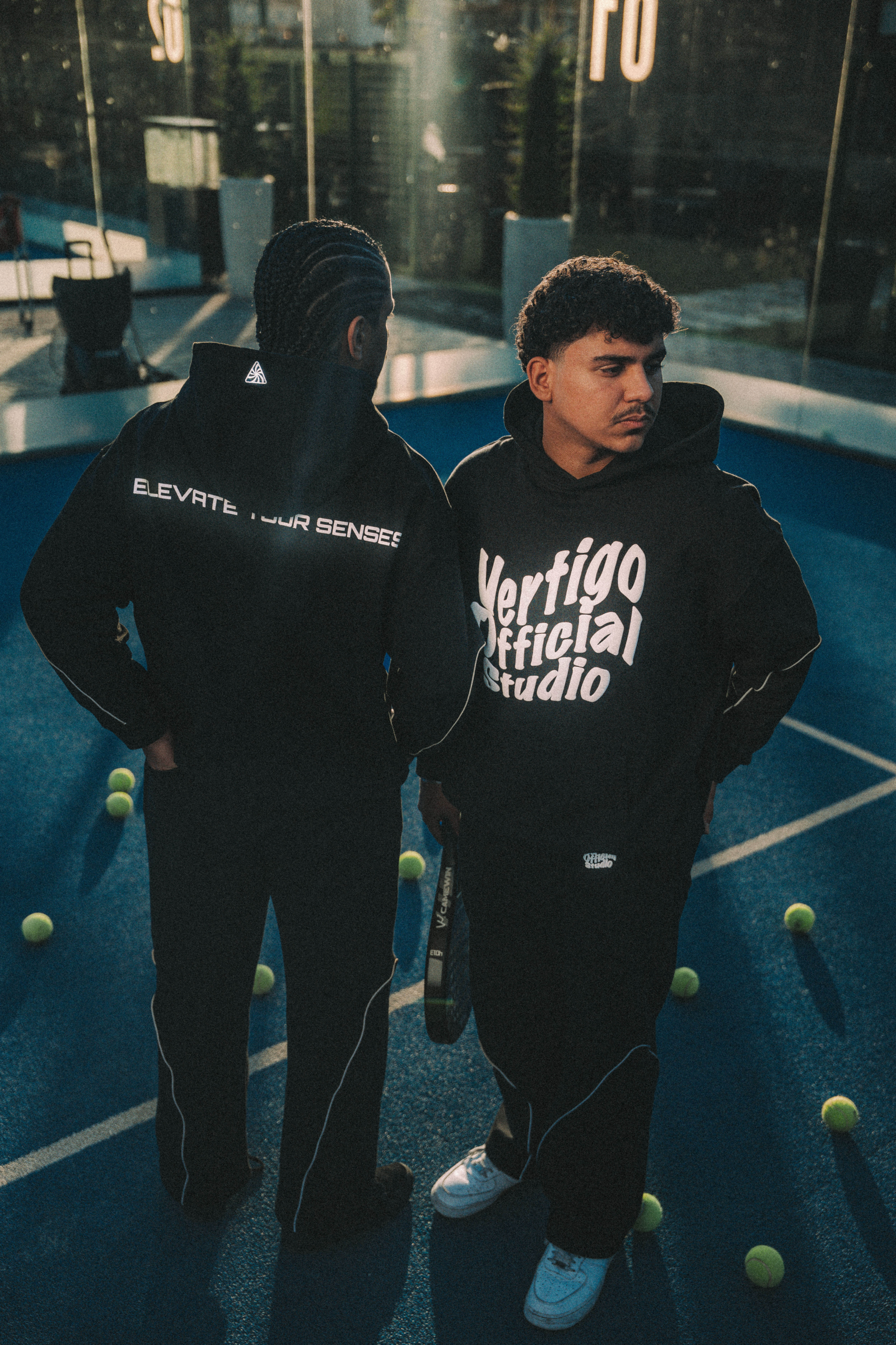Vertigo Black Lightning Hoodie Crafted from heavyweight 400 GSM cotton fleece, this black hoodie features dual lightning strips on the sleeves, a front puff print Vertigo logo, a back puff print statement, and a premium embroidered logo on the hood. Built for comfort, structure, and bold streetwear style.