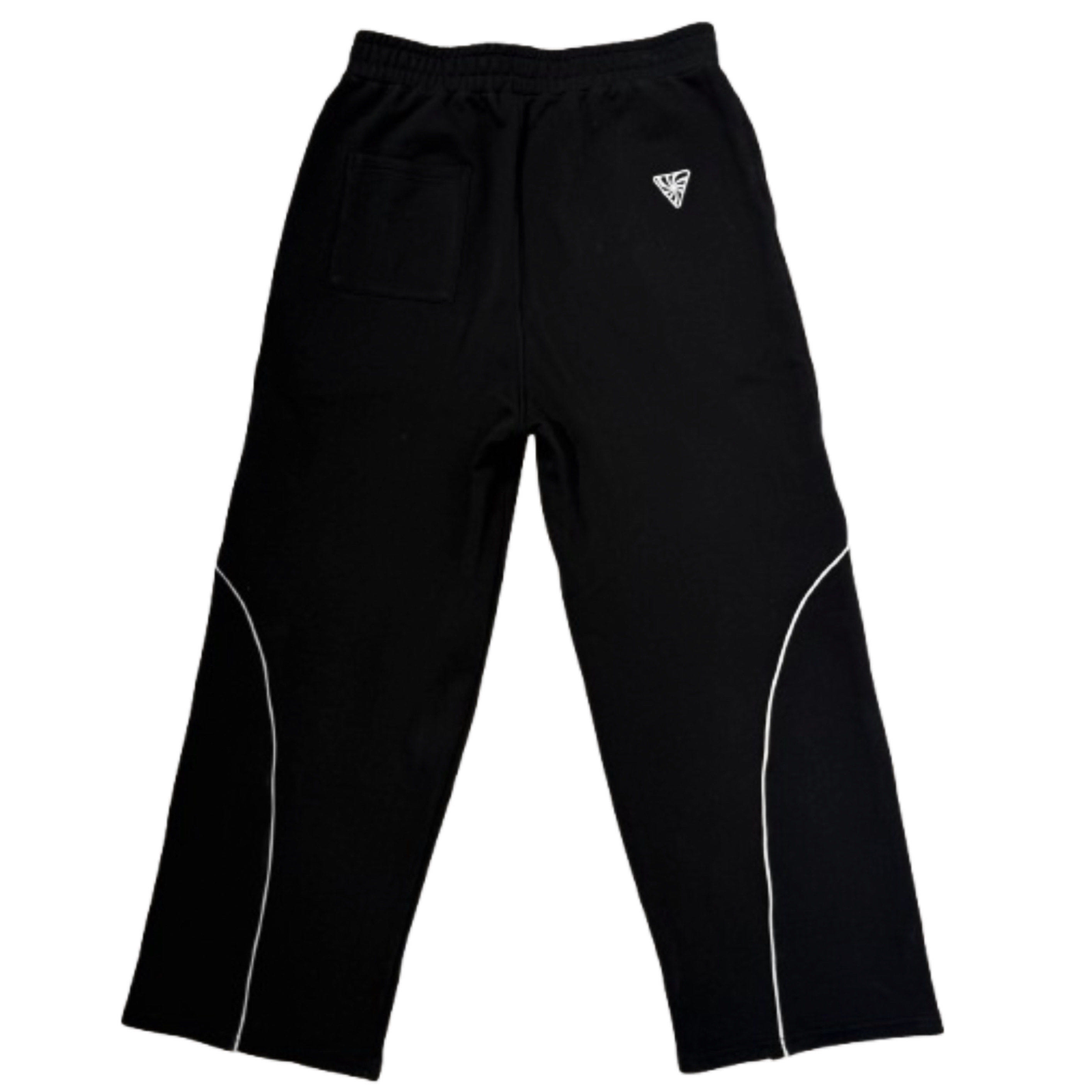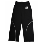 Vertigo Black Lightning Pants Made from heavyweight 400 GSM cotton fleece, these black pants feature dual lightning strips, a small puff print logo on the right, a small embroidered back logo, and a functional back pocket, delivering a bold yet premium streetwear look.